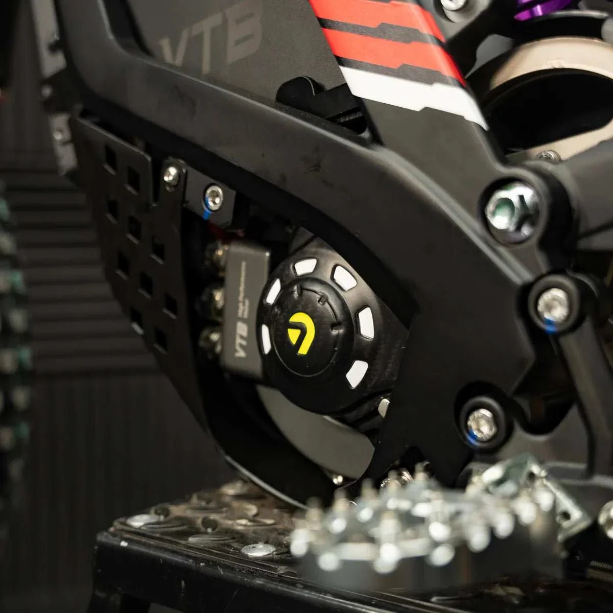 The forged aluminum chassis and swingarm are anodized for a premium look and enhanced durability. The heavy-duty drive belt with mud drainage grooves ensures reliable power transfer even in muddy conditions. Ultra-strong hydraulic brakes and premium GiGigo LED headlights add safety and functionality, while the customizable boot animation lets you personalize your ride.